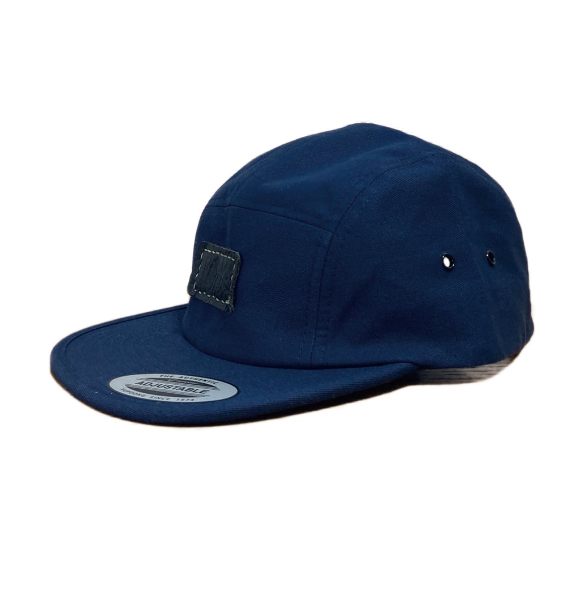 クラシックスタイルのキャンプキャップセンターにワンポイントでピニャテックス (piñatex)というパイナップルからできたヴィーガンレザーを使ってます。