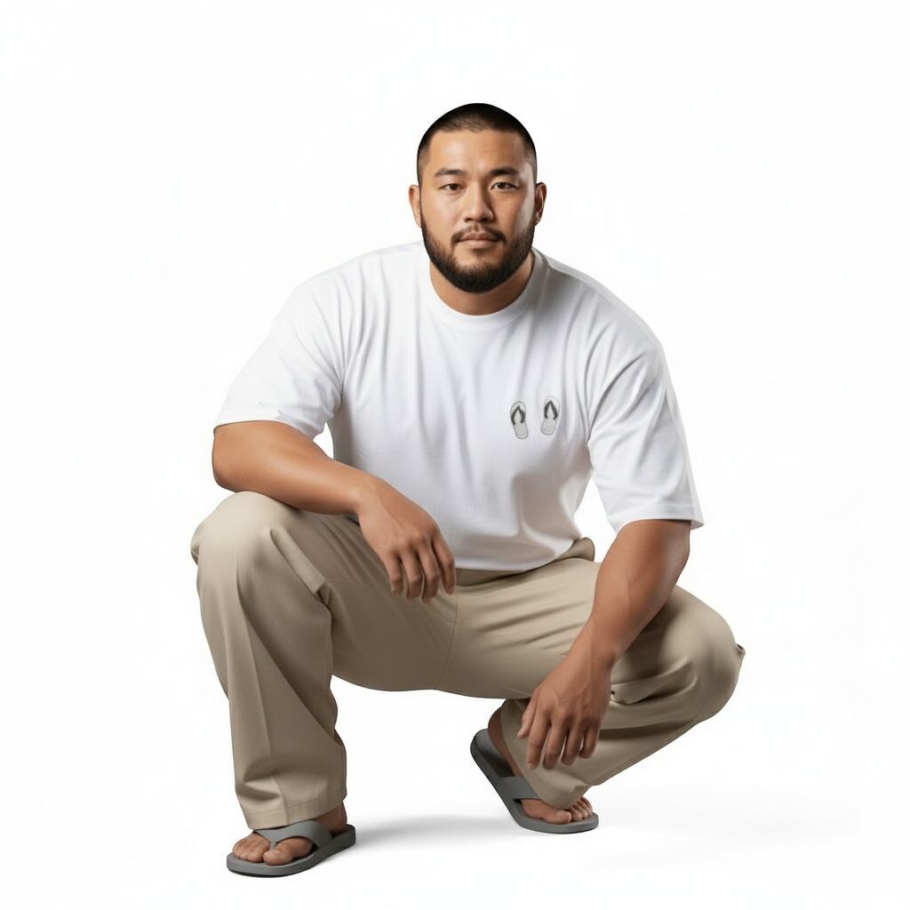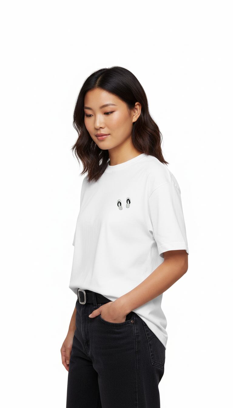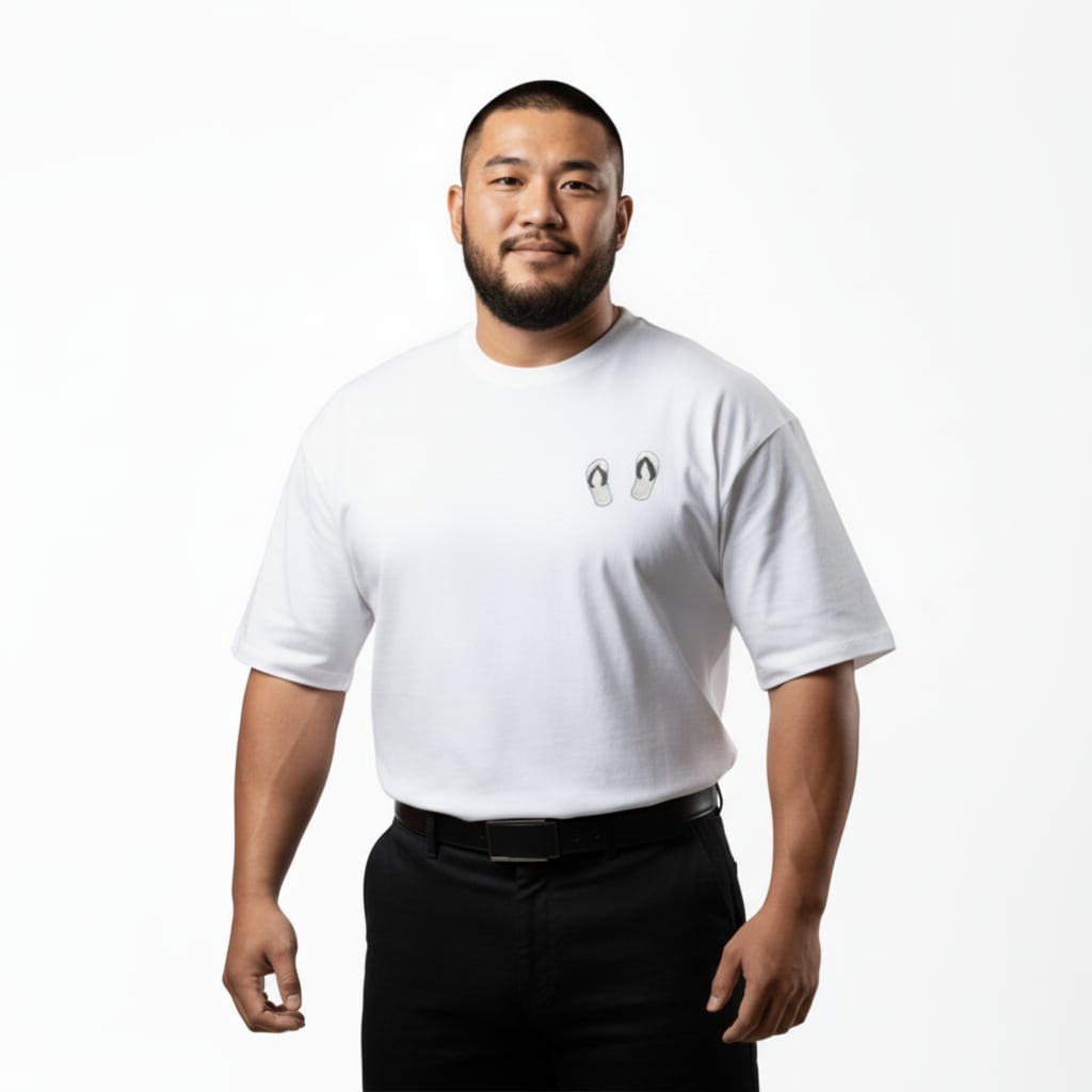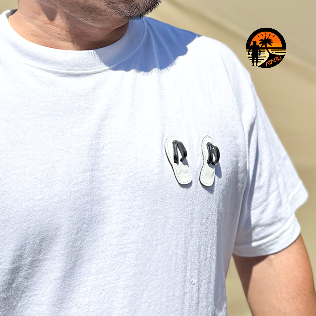 島ぞうりレザーTEE|ハンドメイドTシャツ WHITE